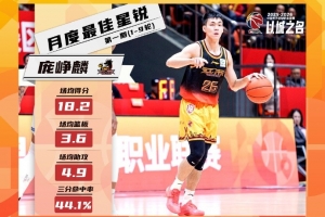 龐崢麟本月出戰(zhàn)9場,場均出場30分鐘,能夠得到18.2分、3.6籃板、4.9助攻。作為外線球員,龐崢麟的投籃命中率達(dá)到52.3%,三分命中率44.1%。12月19日江蘇肯帝亞主場對陣上海久事,龐崢麟在其CBA職業(yè)生涯第3場比賽便砍下32分,這也使他超越趙柏清的19場,成為最快得到單場30+的CBA選秀球員。