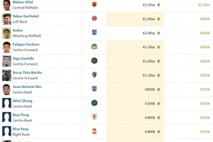 本期中超球員身價(jià)上漲幅度排名: